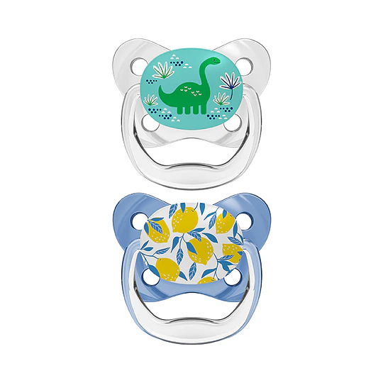 Divertidas chupetas com design exclusivo que promovem o desenvolvimento adequado da boca do bebé.